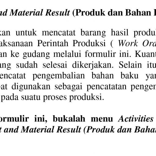 Produksi / MAG hanya memberikan data lengkap terkait produk tersebut, misalnya :