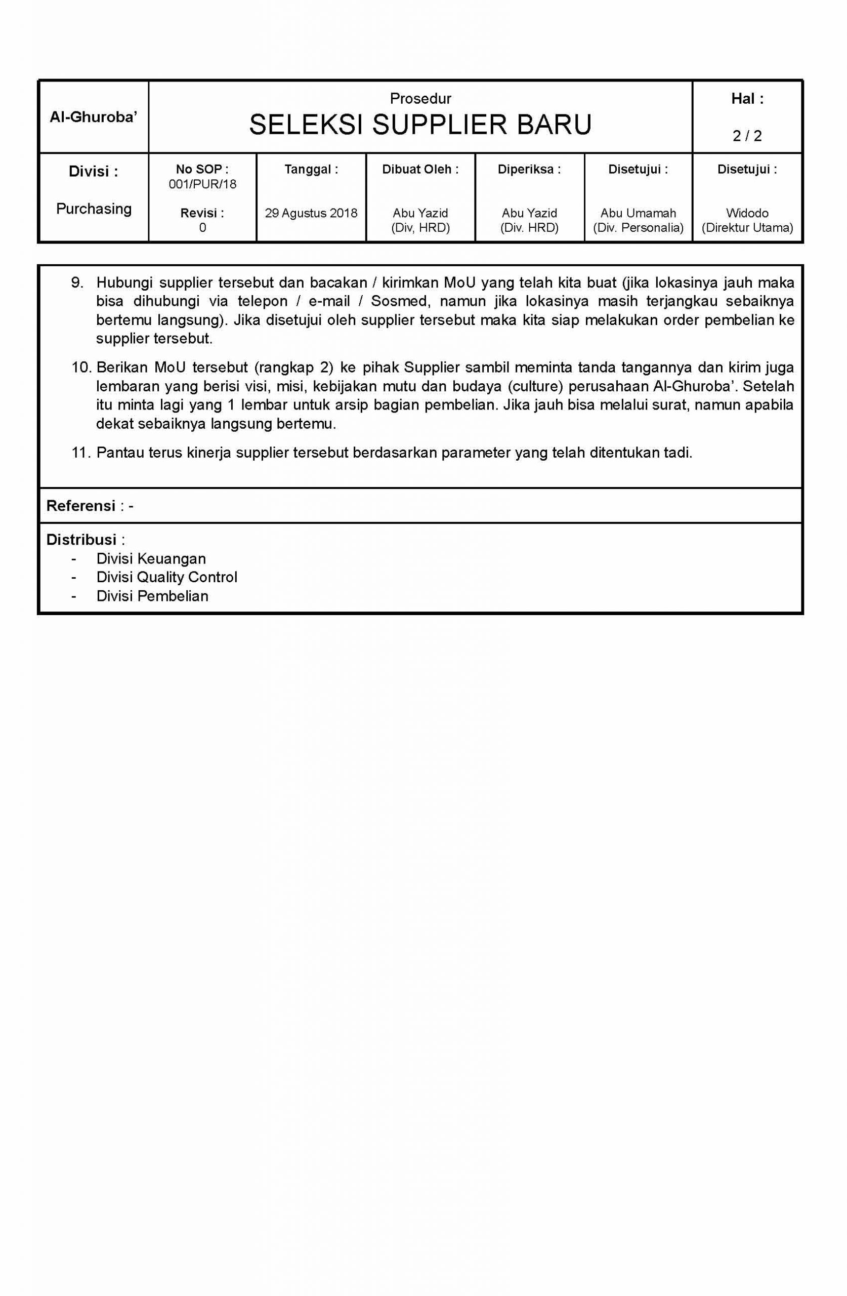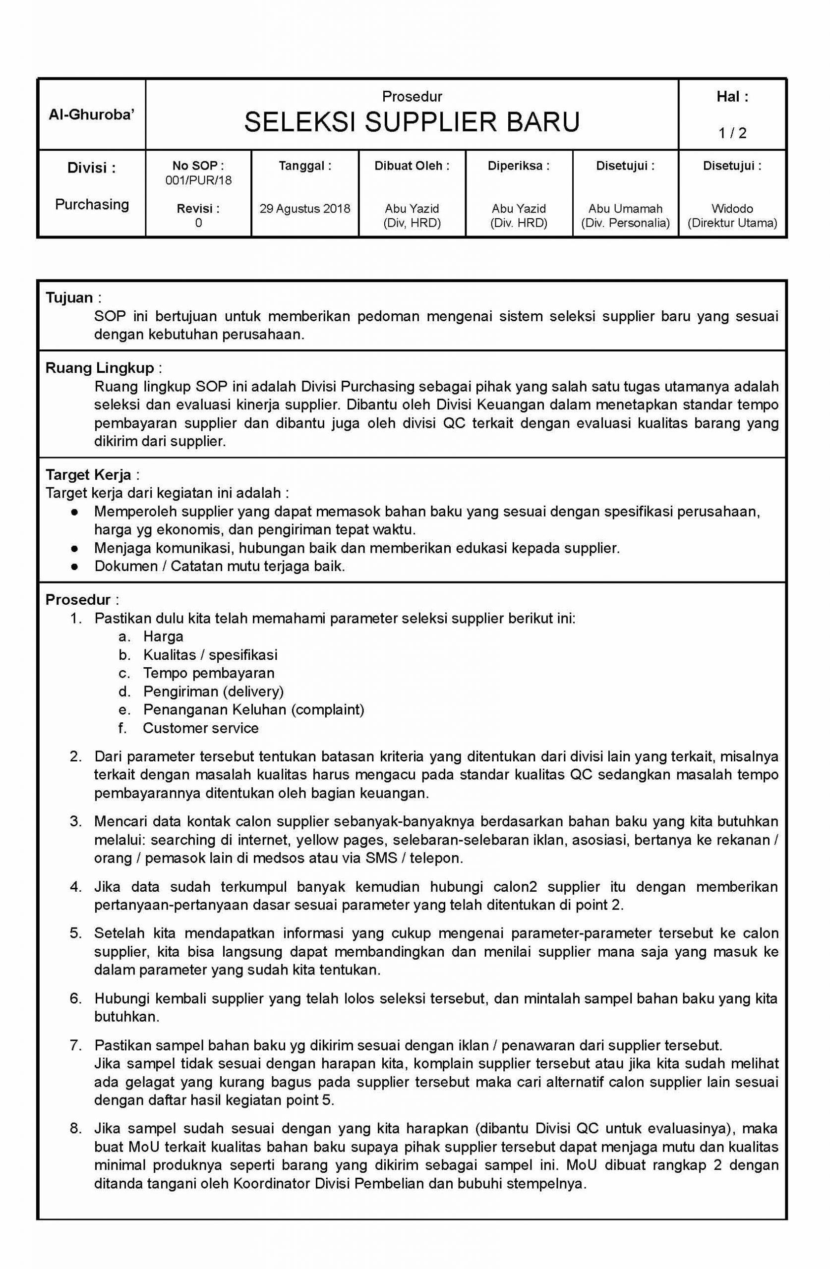 Prosedur Seleksi Supplier Baru